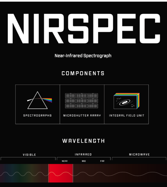 The Near-Infrared Spectrograph (NIRSpec) on JWST operates from 0.6 to 5.3 microns, covering visible through near-infrared wavelengths. Its versatile observing modes enable everything from single-target high-resolution spectroscopy to massive multi-object surveys of the early universe.